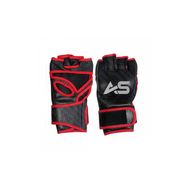 MMA Gloves made of top grade genuine leather. Multi-layered shock absorbing foam padding. Moisture wicking inner liner helps keep hand cool and dry during tough fights. Hook and loop velcro closure. Also available in Synthetic leather. Get customized with your own labels and logos.
