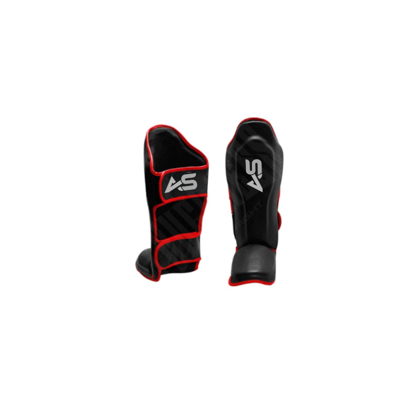 Pro MMA Shin Guards made of fine quality synthetic leather. Embossed shock absorbing EVA foam padding. Contoured shape to cover the parts of shin need. Hook-and-loop leg straps with elastic instep band for firm fitting. Also available in Genuine Leather.